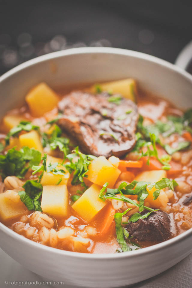 Wielokrotnie byłam zaskoczona ciekawymi połączeniami smakowymi – czego przykładem jest dzisiejsza zupa. „Zwykły” krupnik zestawiony z suszonymi śliwkami i grzybami nabiera całkiem nowego charakteru. Serdecznie polecam Wam tą zupę – jest gęsta, zawiesista i rozgrzewająca. Prawdziwa zimowa zupa. Zapraszam!