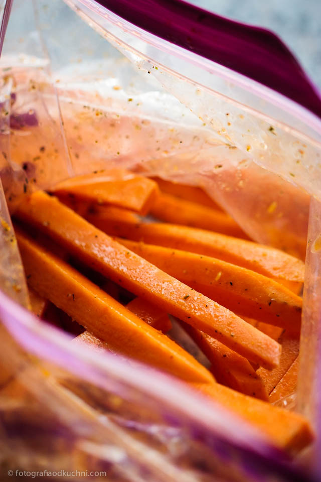 Uwielbiam frytki ze słodkich ziemniaków, zazwyczaj przyprawiam curry, ale nie wszystkim to pasuje 😉 więc często robię kilka porcji, każda z innymi przyprawami 🙂